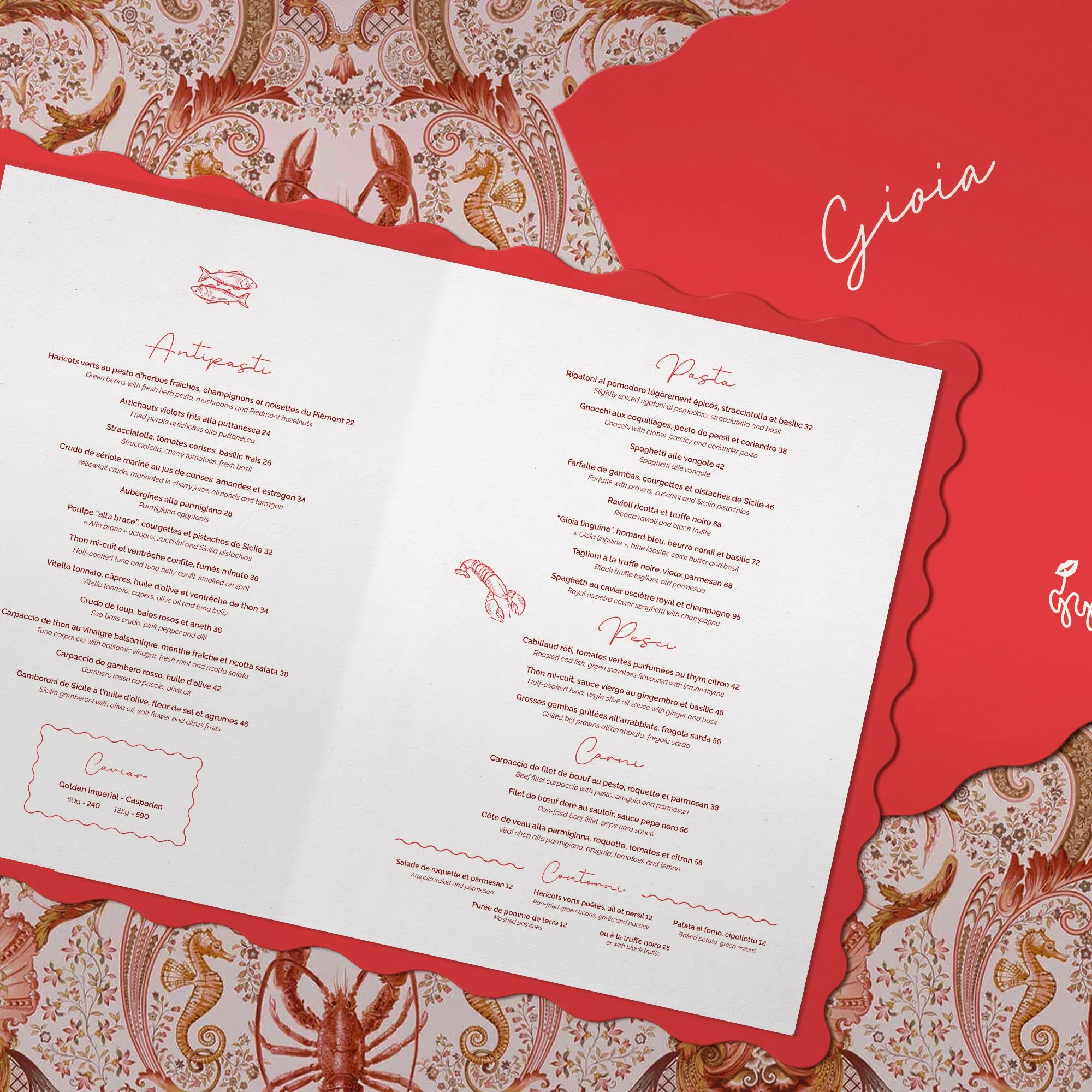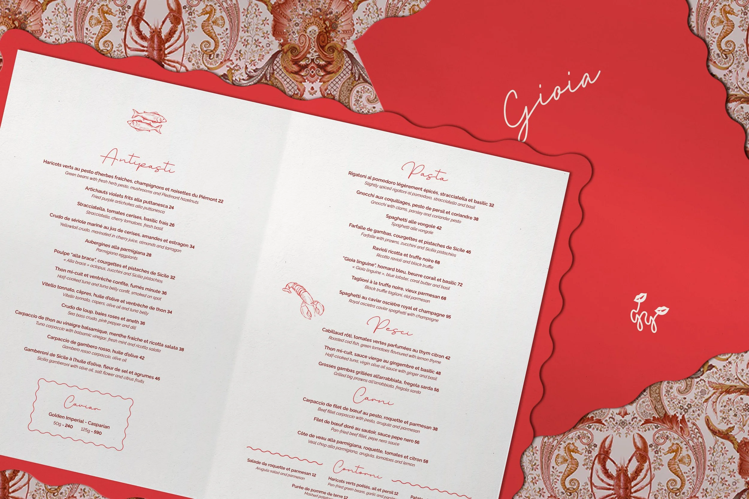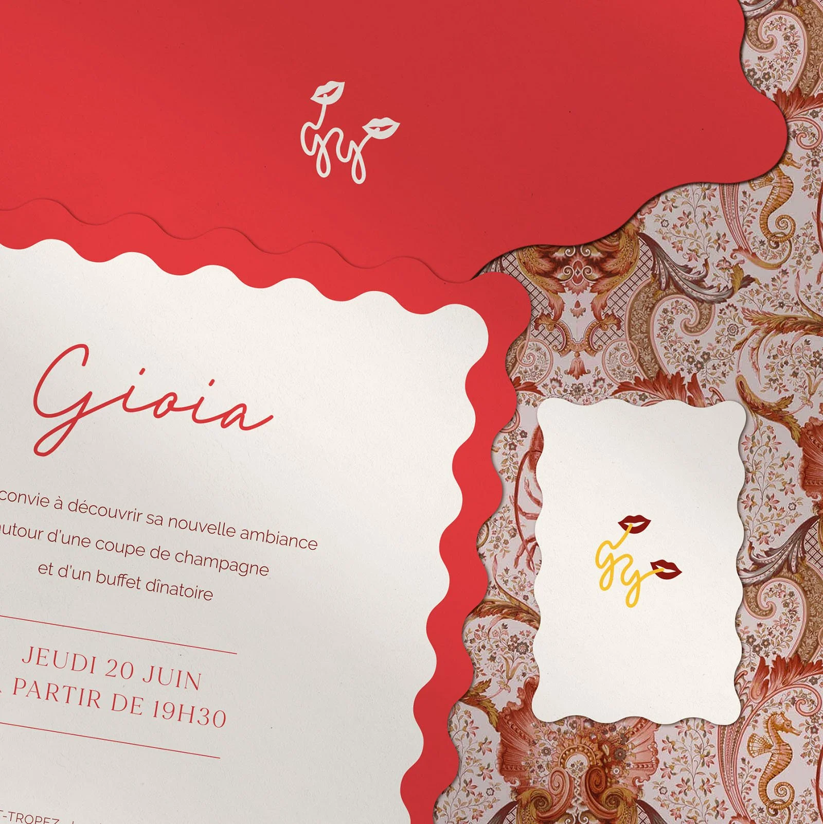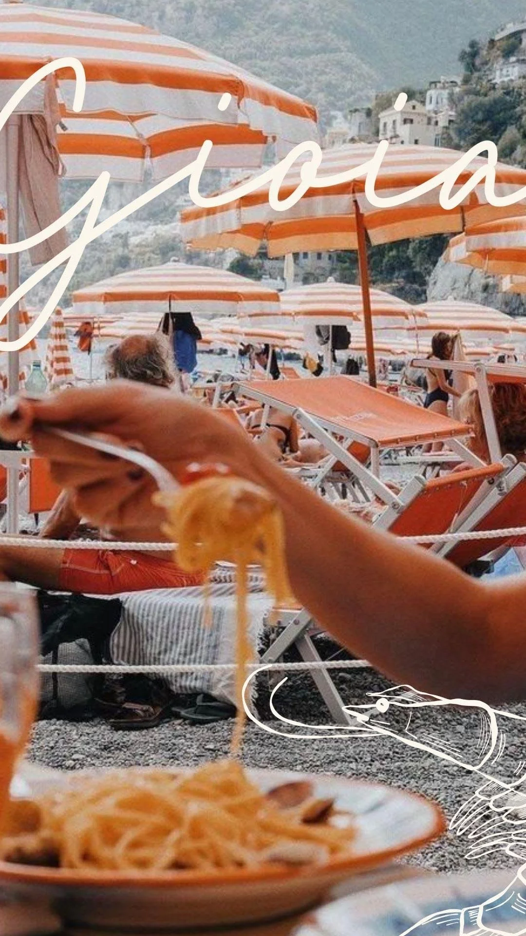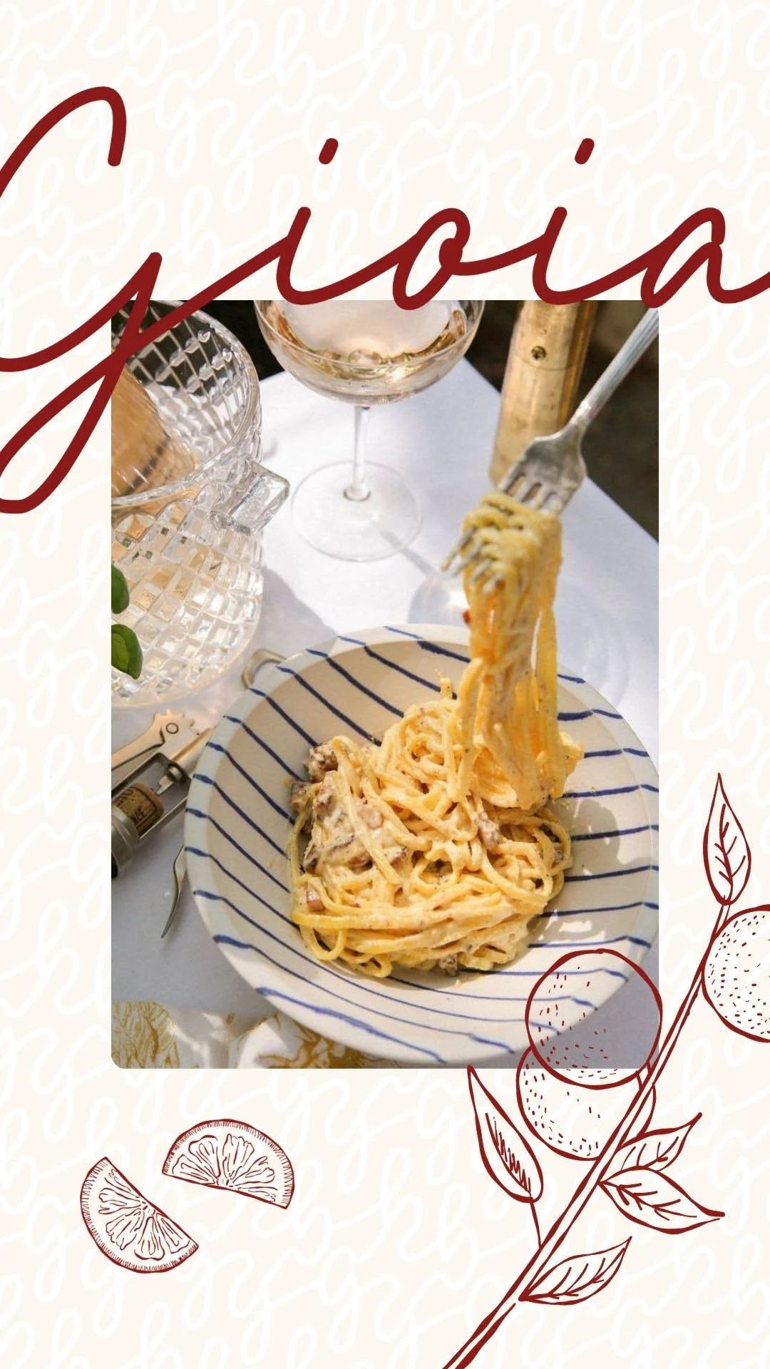 Gioia features a bold visual identity, combining elegant handwritten typography and warm tones with a distinctive icon, capturing the essence of la Dolce Vita with a playful twist.