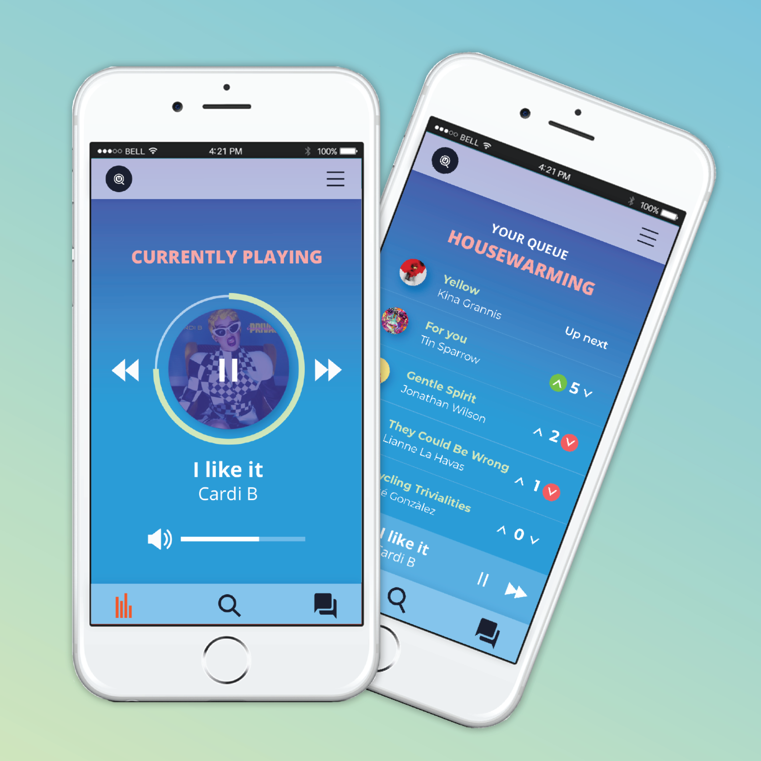 With the ability to collaborate and crowdsource within a gathering of people, U-Queue allows users to manipulate a live queue that is continuously being altered and updated to appropriately fit a party’s mood.