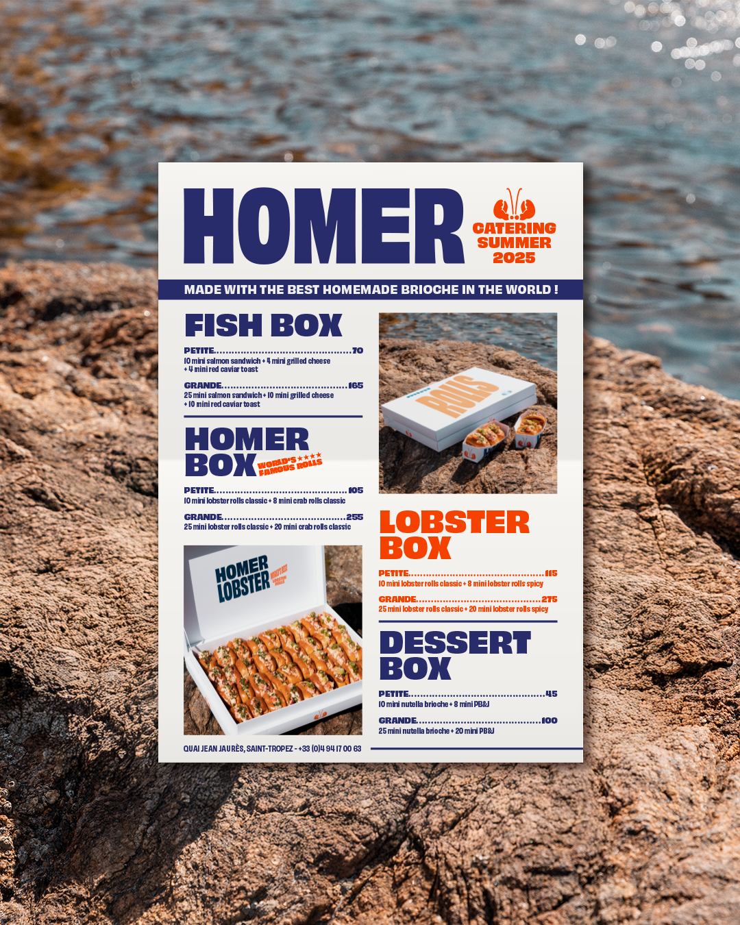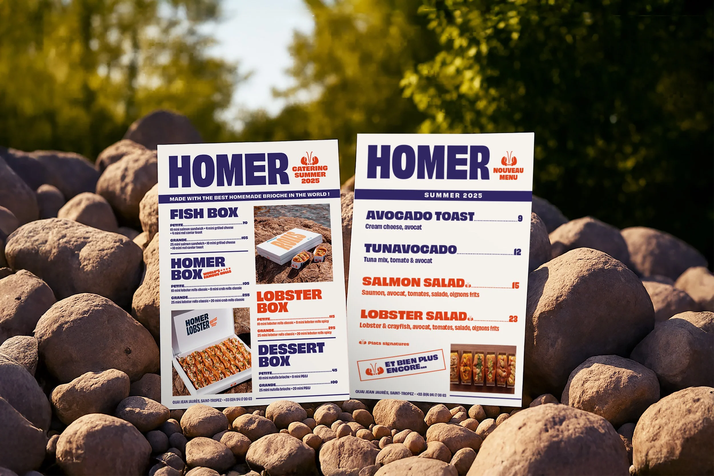 Supports de communication print pour Homer Lobster à Saint-Tropez.