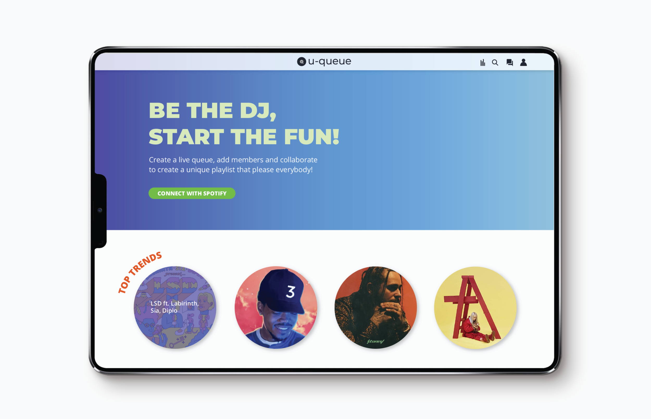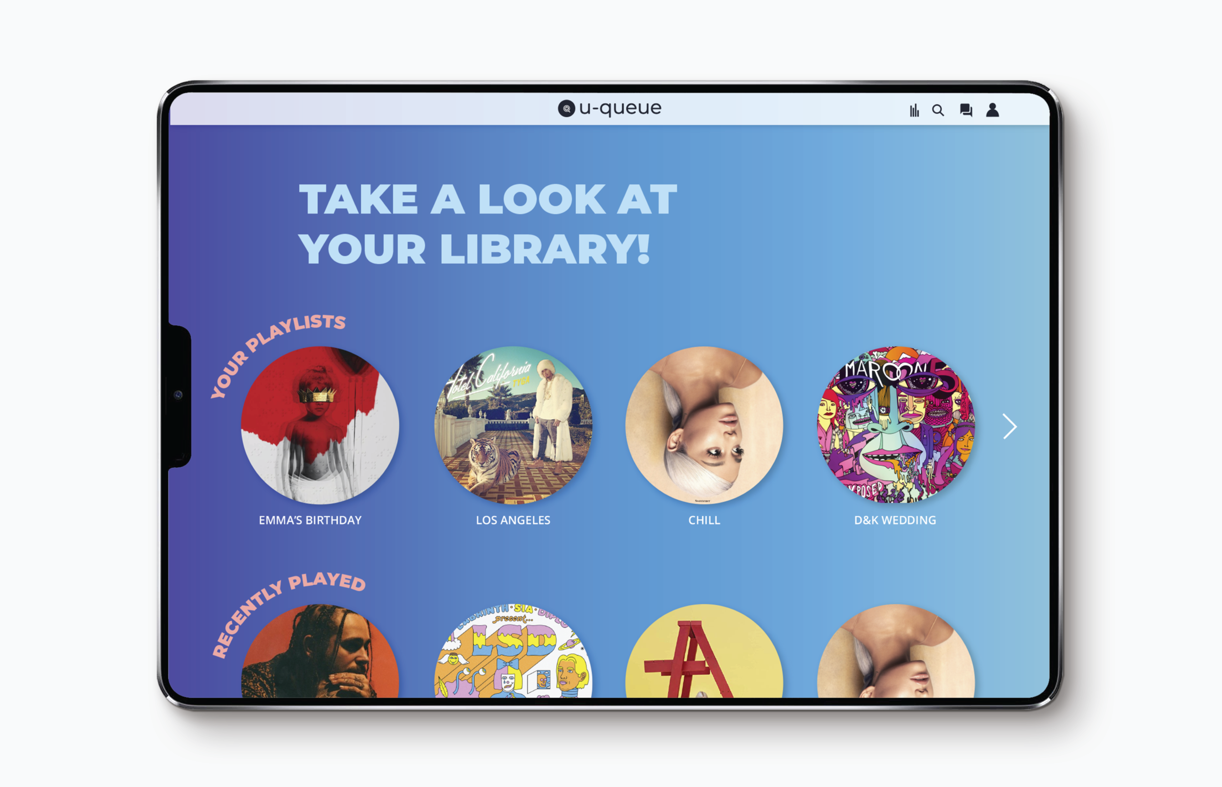 Grâce à sa capacité de collaboration et de crowdsourcing, U-Queue permet aux utilisateurs de manipuler, au sein d’un groupe, une playlist commune (en votant et en ajoutant des titres) afin de l’adapter à l‘ambiance générale.